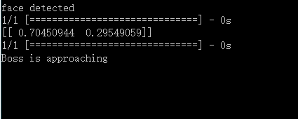 打开摄像头,将其对准老板走到你工作位置的必经之路,捕捉老板的面部信息,使用第二步训练的模型判断老板是否出现,这一步需要使用OpenCV捕捉面部信息,并把数据传递给模型进行识别,所以要先安装好OpenCV。